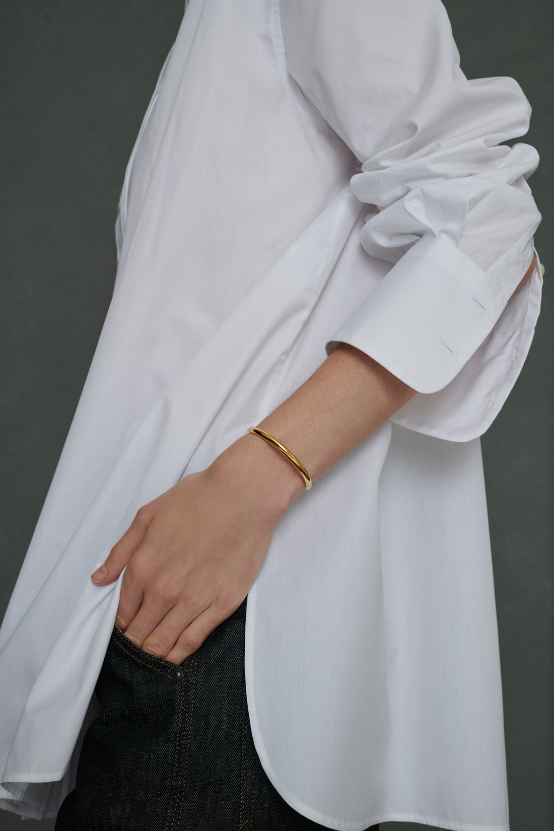 JOHNNY is a thick vermeil bangle. It has a ratchet clasp that makes it easy to put on the wrist.