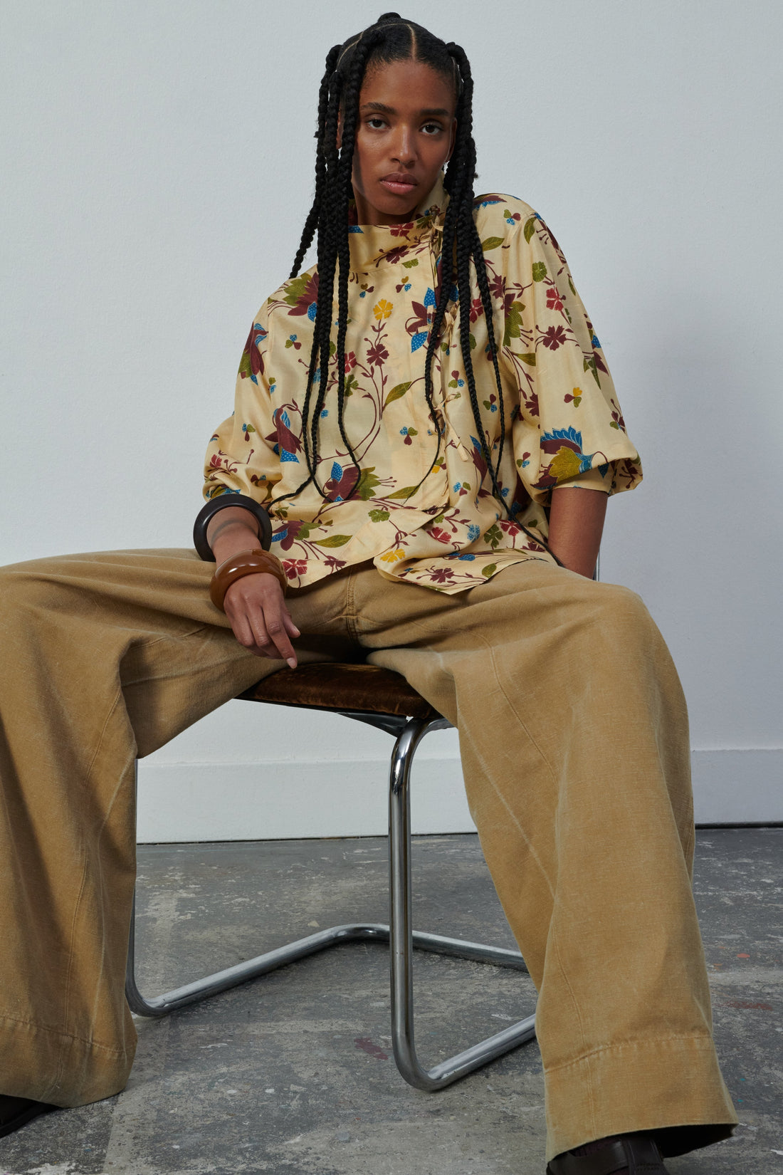 verveine blouse Printed silk doupion ties