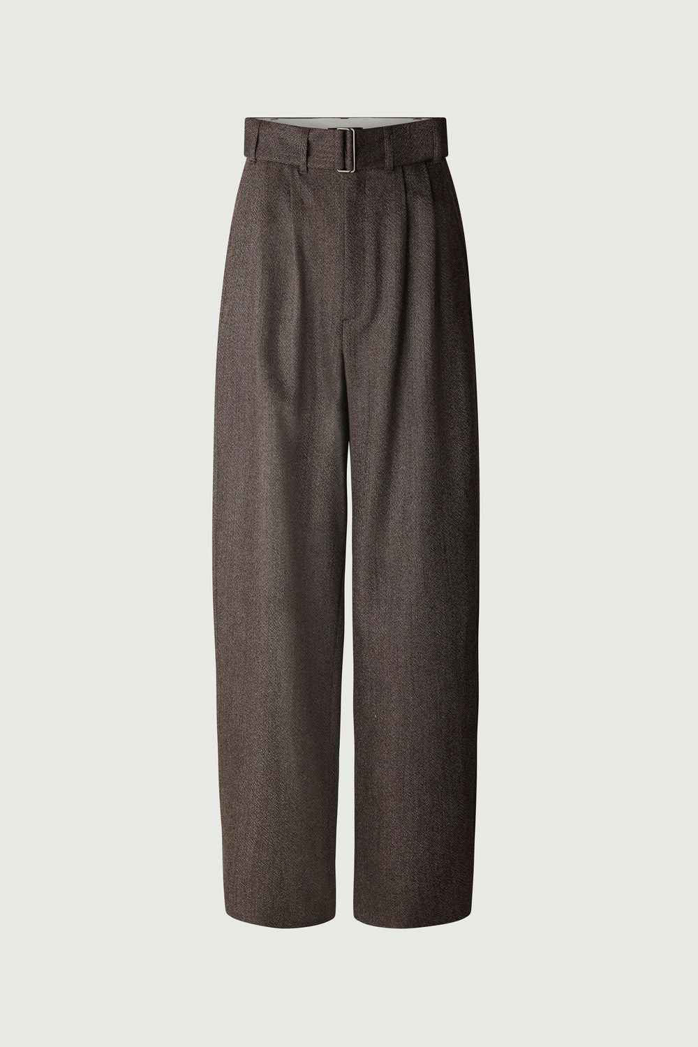 Pleated wool twill trousers brown/ecru
