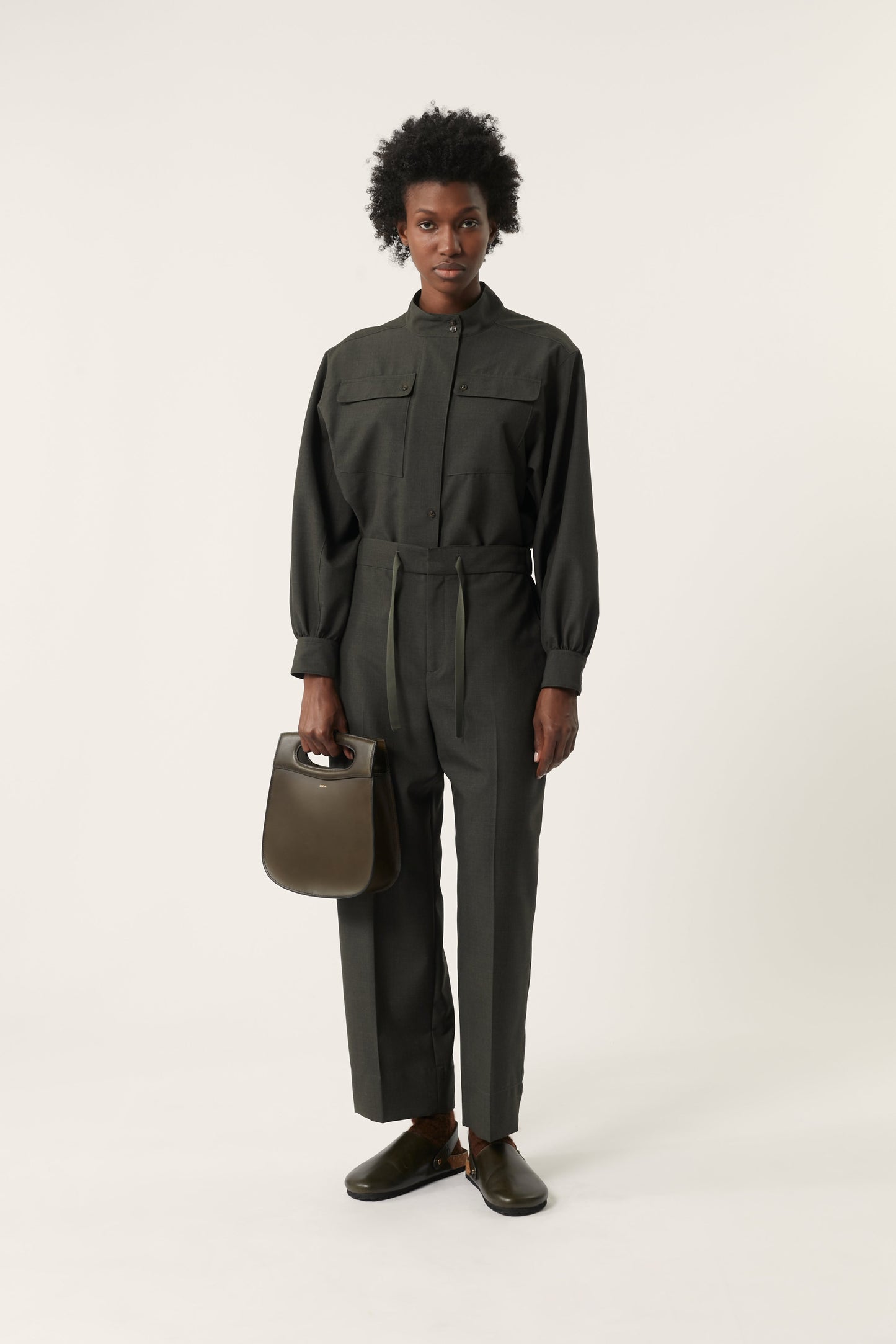 Khaki mottled wool trousers khaki