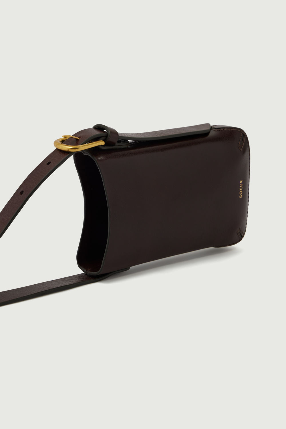 clutch cali Glossy Brown Leather Phone Holder