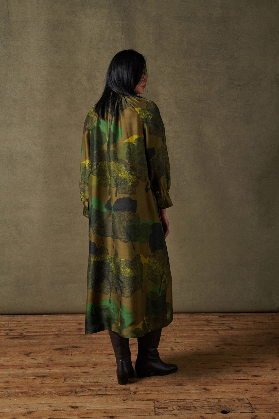 Khaki silk print dress