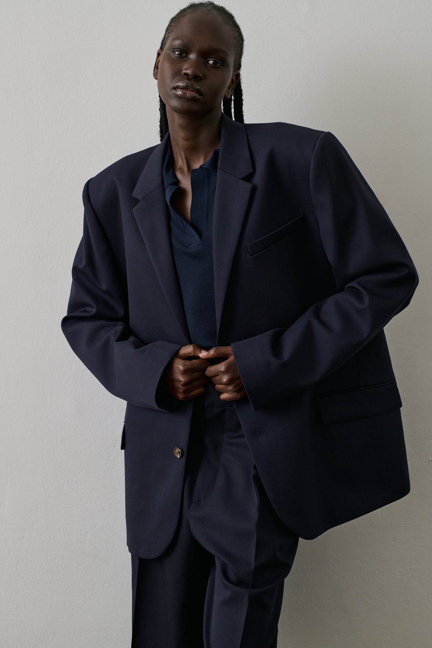 Midnight blue wool gabardine blazer midnight blue